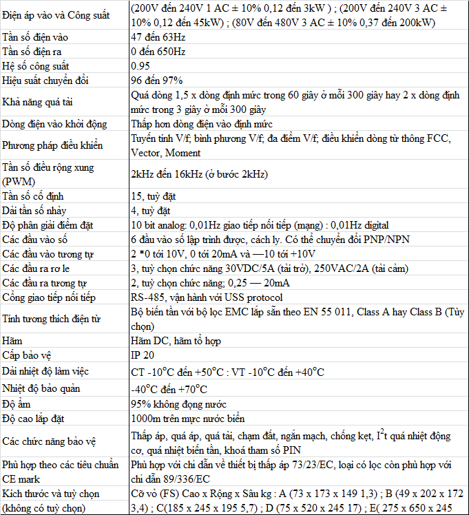 - 3 bộ tham số trong 1 nhằm thích ứng biến tần với các chế độ hoạt động khác nhau.